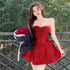 Women Strapless Red High Waist Ball Gown Dress Spring Fashion Party Clubwear christmas